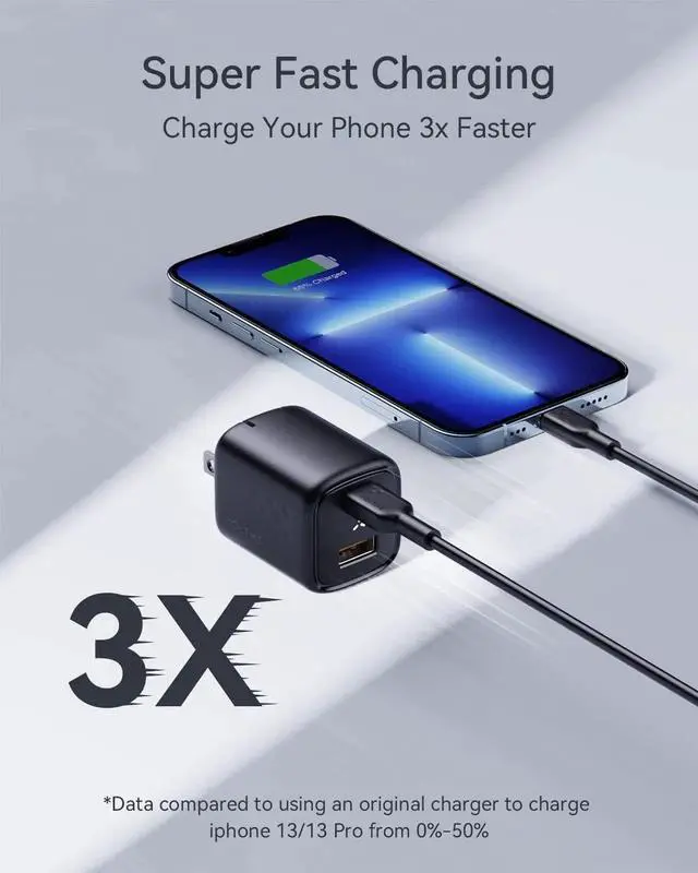 Charge Faster Than EverOur 30W USB-C Power Delivery port charges your devices up to 3x faster than standard chargers. With both a USB-C and USB-A port you can charge two devices at once you can charge almost any mobile devices at top speed. Powered By GaN III TechVOLTME usb-c charger is built with the latest GaN III Tech which means it's 20x faster switching 3X smaller and lighter 40% energy-saving 3x higher power density and 3x faster charging than traditional silicon chargers. Get the best possible charging experience with our advanced GaN III technology. Superior SafetyOur wall charger is designed with your safety in mind.