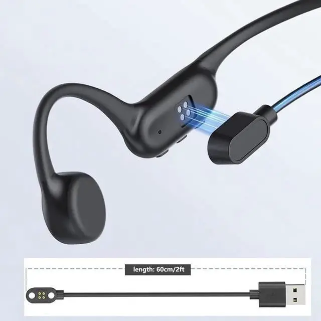 This replacement headphone charging cable will provide you with a reliable charging solution for your bone conduction headphone. Compact and PortableThe length of the charging cord is 60cm/3ft. It is lightweight and easy to carry. It is perfect for business trips and travel. You could also use it as a replacement cable if you lost the original one or put it in your office as a standby charging cableNoteWe offer 1 year warranty for this product. If your bone conduction headphone loses any power and shuts down it may take a few seconds to turn it back on after recharging.