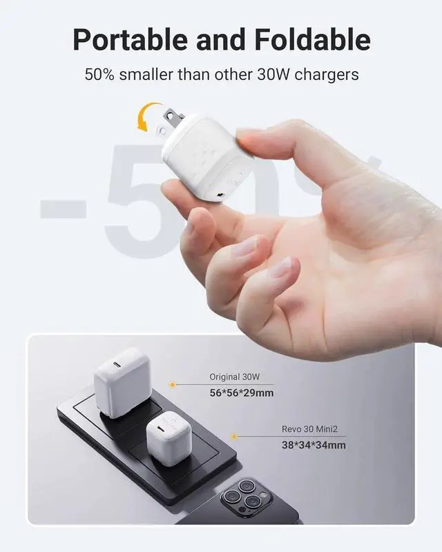 Ultra Compact Size: Revo 30 Mini 2 With upgraded GaN III chip you can get groundbreaking performance and incredible size; the foldable plug design allows you to take it with you anywhere.