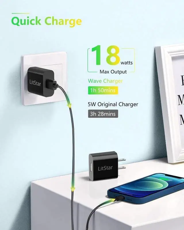Assurance: This power adapter with its integrated circuit chip identifies the charging state of the device and provides protection against over-charging over current and over-heating. Charging stops when the devices battery is full. Safe to useCompact