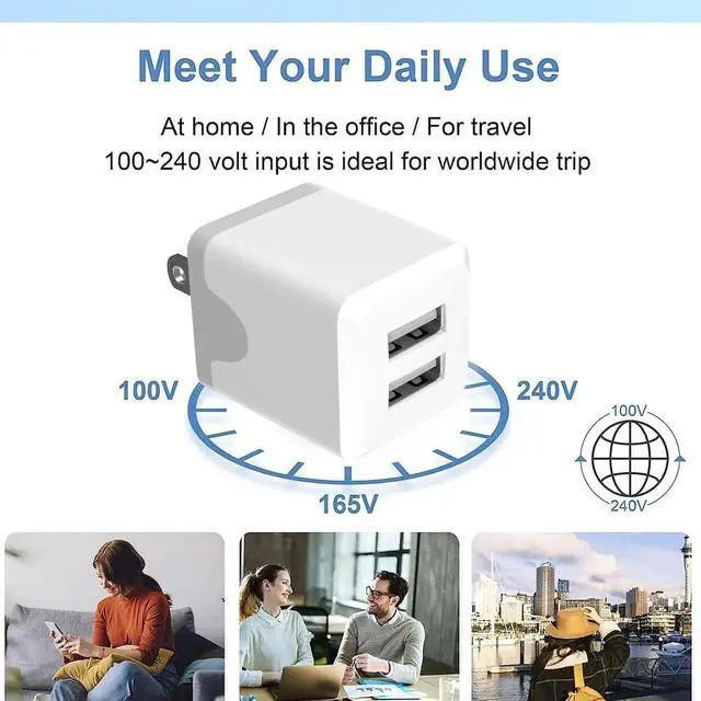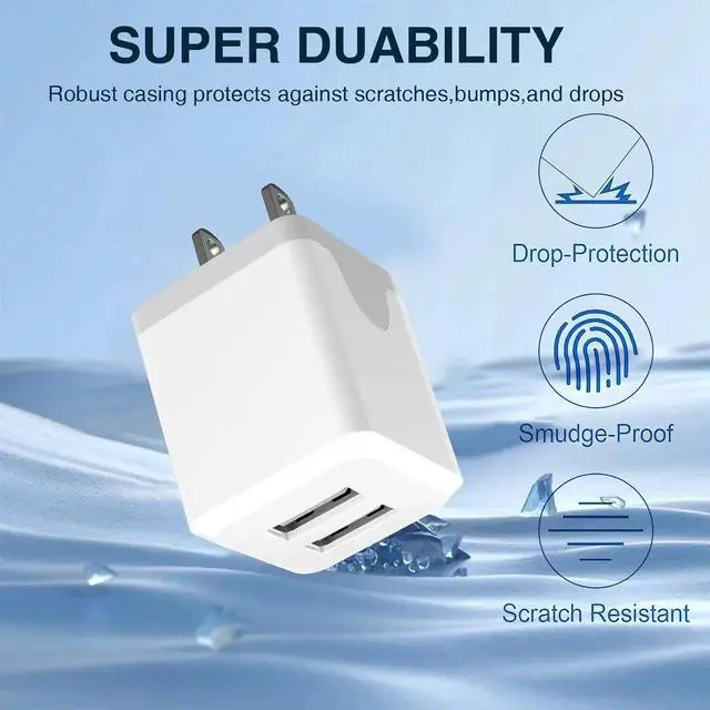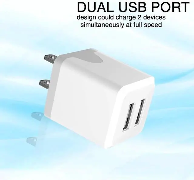 Designed: wall charger block is compact easy to carry and has a comfortable grip Charger features a dual port design that provides the most efficient current distribution for your two charging devices This usb charger block is suitable for use at home while traveling in the office and on business trips.