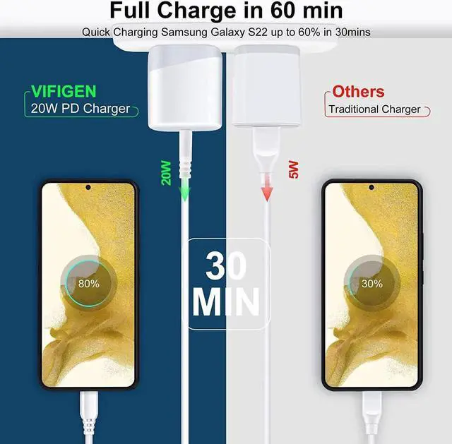 Super Fast Charger Adaptive Fast Charging support PD 3.0 /QC 3.0 /QC 2.0 / 2.4A /AFC/FCP fast charging protocol. charger block Type C charger with 38W(Max. When only use USB C port)/20W PPS PD+ QC 3.0 Port. It only takes about 30mins to charge Galaxy S25 S24 from 5% to 65%. 4X Faster than an original 5W usb wall charger. Wide Compatibility20W USB-C power adapter fast phone box for Galaxy S25 Ultra S25 S25+ S24 FE S24 Ultra S24 S24+ S23 Ultra S23 FE S23+ S22 S21 FE S20 S10e S10 S9 S8 Galaxy A16 5G A15 5G A14 5G A55 A35 A25 A56 A36 A54 A13 5G A15 5G A15 A25 A53 A06 5G A03s A23 A24 A34 A04s A33 F54 A42 A20 Z Flip6 5 4 3 Z Fold6 5 4 3 Note 20/10/9; iPhone 16e/16 Pro Max/16 Pro/16 Plus/16e/16 15 Pro Max/15 Pro/15 Plus/15 14 13 12 11 SE Xs Max/Xs XR X 8 7 6 iPad Pro 12.9 /11 iPad Air 5/4 Mini; Google Pixel 9a 9 Pro Fold 9 Pro XL 9 Pro 9 8a 8 Pro 8 7a 7 Pro 7 6a/6 Pro/6/5 XL/5/4 3 2 XL; LG G8X G8 G7 G6 V50 V40 V35 V30 and USB-C plug ins.
