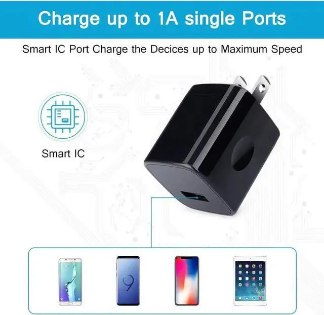 Single Charging Cube: USB charger plug with one port design provides fast charging speed for your cell phone to save more time.