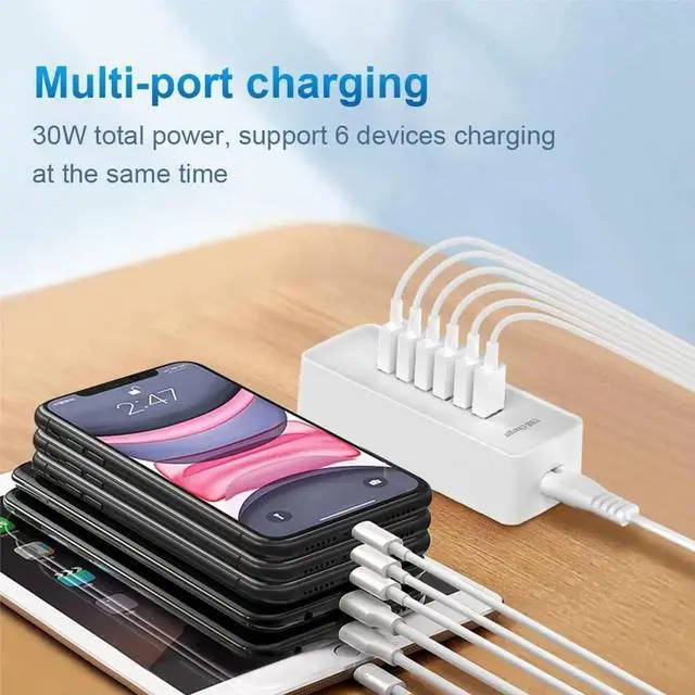 Revolutionary fast charging technology: Our six-port charger adopts industry-leading fast charging technology. This charger has an amazing 30-watt super-power. Whether you are charging your mobile phone tablet or other digital devices at the same time you can quickly replenish the power at lightning speed. Say goodbye to the long wait let your equipment fully revitalize in the shortest time and be ready to accompany you to meet various challenges. Multi-port design convenient and worry-free. It is equipped with multiple charging interfaces which are sufficient to meet your needs for charging multiple devices at the same time. You no longer have to worry about competing for the charging port. We will provide efficient charging services for all your smart devices at one time to make your life more convenient and orderly. Widely compatible and versatile. Whether it is Android devices or other electronic products this charger is perfectly compatible. Whether you are using the latest smartphone or an old model of tablet it can stably output suitable current and voltage to ensure that each device can be charged safely and quickly. Safety and security feel free to use. We are well aware of the importance of charging safety.