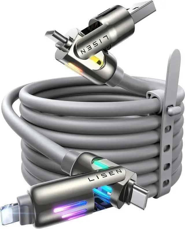 [What You Get] LISEN 6.6FT 240W 4-in-1 Multi Charging Cable a length suitable for any situation so you no longer need to stay near a power outlet. Additionally our reliable customer service is available 24/7if you have any questions or issues feel free to contact us. We guarantee resolution within 24 hours. Please note the 240W Type-C cable can power laptops through the Thunderbolt port but it is not a USB 3.0 /4K cable.