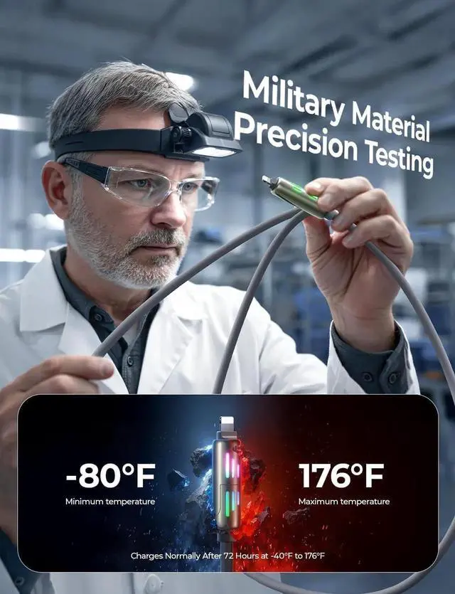 USB C port: Just 35 minutes it can charge your iPhone 16 to 96% Switch 2 to 90% S23 to 96% MacBook Pro to 86% and iPad Pro to 89%. Just ensure you're using a compatible USB-C adapter with sufficient power for optimal results. It is worth mentioning that any combination of connectors has a data transfer speed of 480Mbps 1200 songs per minute. [So Strong Heavy-Duty Thickened Silicone] The heavy-duty USB-C cable boasts an impressive 50 000+ bend lifespan! Made from food-grade skin-friendly silicone with a baby-soft touch its tangle-free waterproof and easy to clean. The sturdy zinc alloy housing is 1000 times stronger than plastic ensuring consistent and reliable charging every time. The stylish leather strap keeps storage neat and organized offering ultimate convenience. [PD 3.1 Emark Safe Chip & RGB light] The USB C to USB C Cable EMARK 3.1 chip not only enables 240W fast charging but also maximizes device safety ensuring 24-hour constant temperature charging. It automatically stops charging once the device is fully charged preventing overcharging and battery damage. And RGB lights on both ports will keep changing colours when charging. It is a soft light not flashing eyes full of gaming atmosphere.