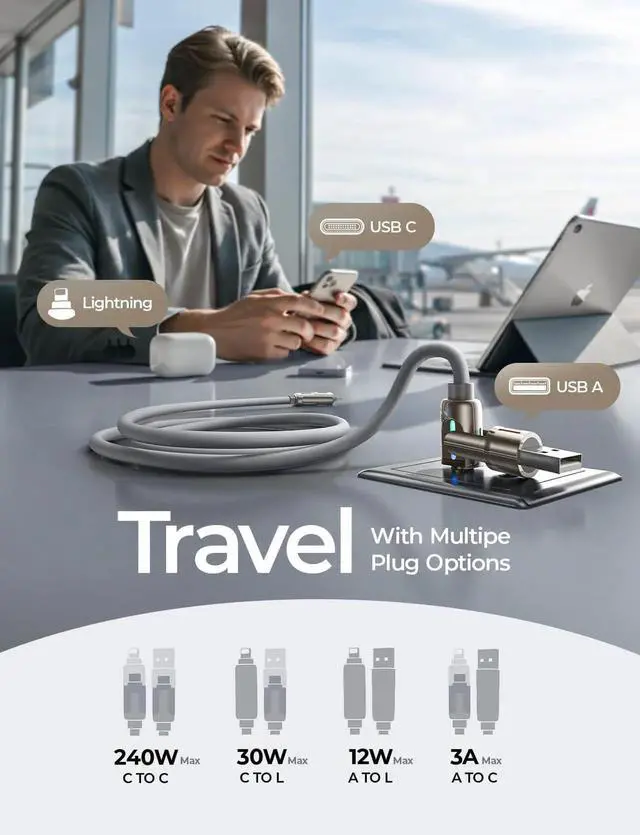 [4-in-1 Charging Cable for All Devices Switch 2] This Chubby USB C Cable features four connectorsUSB C to USB C USB-C to lighting cable USB-A to USB-C and USB-A to lightning cabledelivering a complete solution for C to C fast charging and data transfer. It allows you to effortlessly power and sync a wide range of devices including the latest iPhone 16/15/14 iPads Galaxy smartphones MacBooks tablets and more. One cable is all you need for travel or business trips. [Time-Saving 240W Fast Charging & Data Sync] Experience ultra-fast usb to c cable with the USB C to