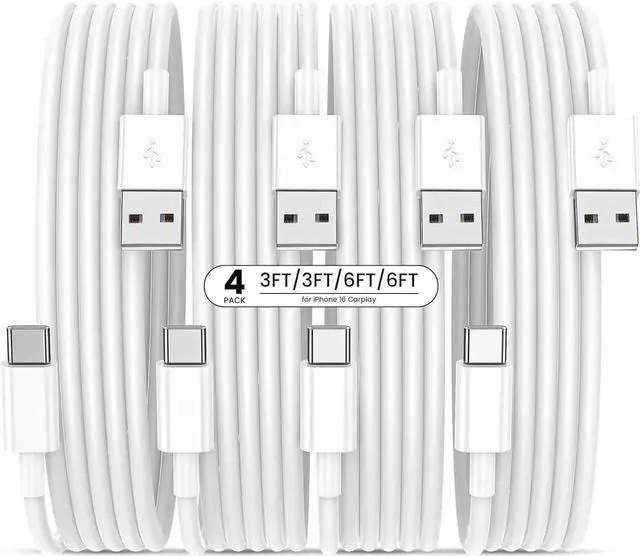 ![Alt view image 6 of 6 - USB to USB C Cable with CarPlay [4-Pack 3FT&6FT] USBA to Type C Fast Charging Cords for iPhone 16/16 Plus/16 Pro/16 Pro Max/16e/15 Pixel A15/A25/A35/A54/A55 Galaxy S24/S23/S22/S21/S20/S10 Note 20](https://c1.neweggimages.com/productimage/nb640/C280S2509190FPZX97E.jpg)