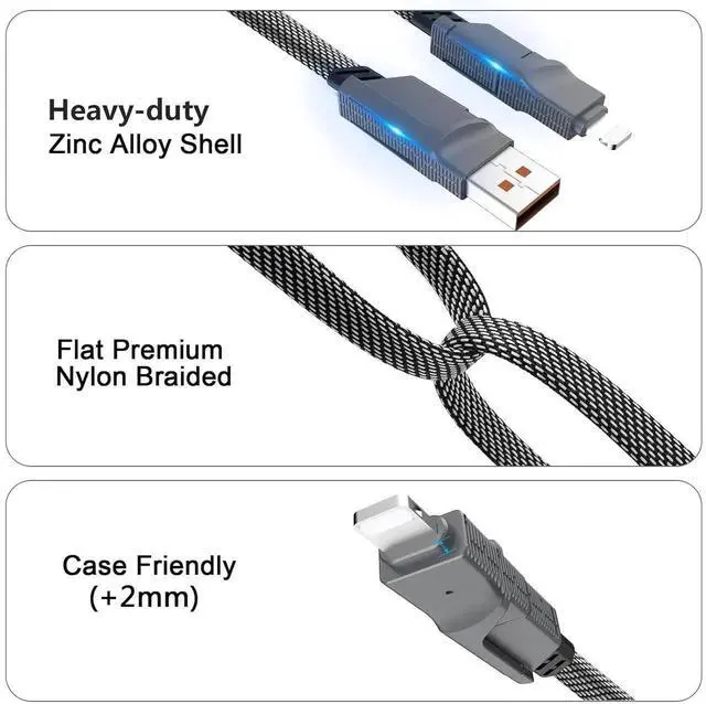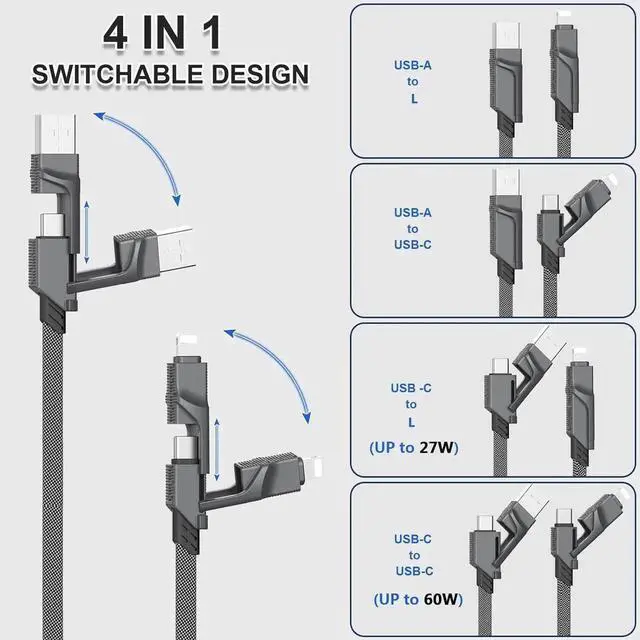 ![Alt view image 6 of 6 - 2Pack 4-in-1 USB C Cable 60W 6FT Lightning Cable Fast Charging Flat Nylon Braided for iPhone iPad Charger Cord [480Mbps Data Sync] Multi Charge Cable with Lightning/Type C/USB A Port](https://c1.neweggimages.com/productimage/nb640/C280S2509190GXEOEC9.jpg)