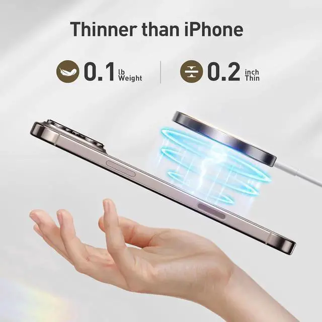 15W Portable Wireless Charger: Our 15W iPhone Magnetic Charger Quick Charge Adapter for lightning fast charging. Charge your iPhone 15 to full capacity in just 2.5 hours you can quickly power up your devices without any hassle. Fits perfectly on your workspace or nightstand with a smaller thinner minimalist design! Keep your iPhone 16 15 Pro Max and Air Pods Pro 2 charged at all times.