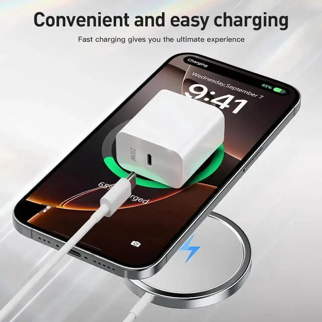 Enhance your Charging Experience: for Wireless Charger comes with a USB-C integrated cable Round in appearance the Magnetic Wireless Charger for iPhone embraces the future of charging technology delivering seamless efficient power when you need it most.