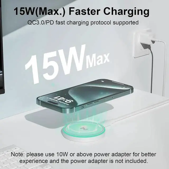 Note: Non-Magnetic cases may weaken magnetic adsorption. For stronger attachment we recommend using a Magnetic-compatible case. 15W Fast Wireless ChargingQuick Power Boost Supports up to 15W fast charging for iPhone 15 series delivering a 50% charge in just 30 minutes and a full charge in 2.5 hours (? 3x faster than standard 5W charging).??