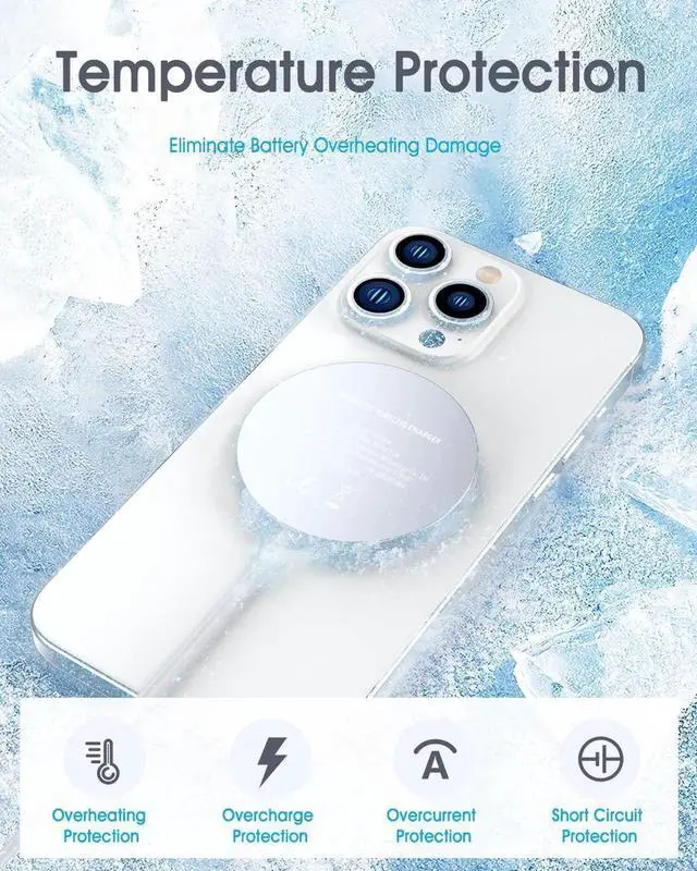 Designed with high quality aluminum alloy shell this magnetic charging wireless chargers is better at heat dissipation for low temperature charging. And the built-in smart chip provides over-current over-voltage short circuit and over-temperature and other protection to protect your phone battery from damage