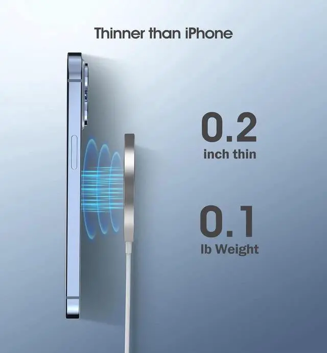 SAFE AND RELIABLE INTELLIGENT PROTECTION: This wireless charger for iPhone always charges your device safely and securely. A built-in smart chip protects your phone from overheating overcharging and short circuits for peace of mind when using a magnetic wireless charger. SLEEK PORTABLE DESIGN & GOOD SHOPPING EXPERIENCE: The lightweight design makes it easy to carry and can be placed in a pocket or handbag that does not take up any space. with over 3 years of manufacturing experience we provide our customers with reliable products and a good shopping experience. Please feel free to contact us for our professional advice if you have any problems when using the magnetic wireless charger.