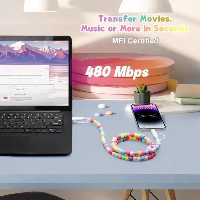 Charging Cord: This usb c cord is 3.3 ft in length; for iphone charger cable keep your devices charged and data synced anywhere anytime with data sync speeds up to 480Mb/s for transferring pictures videos files and more 3.3 FT 4 in 1 Bead
