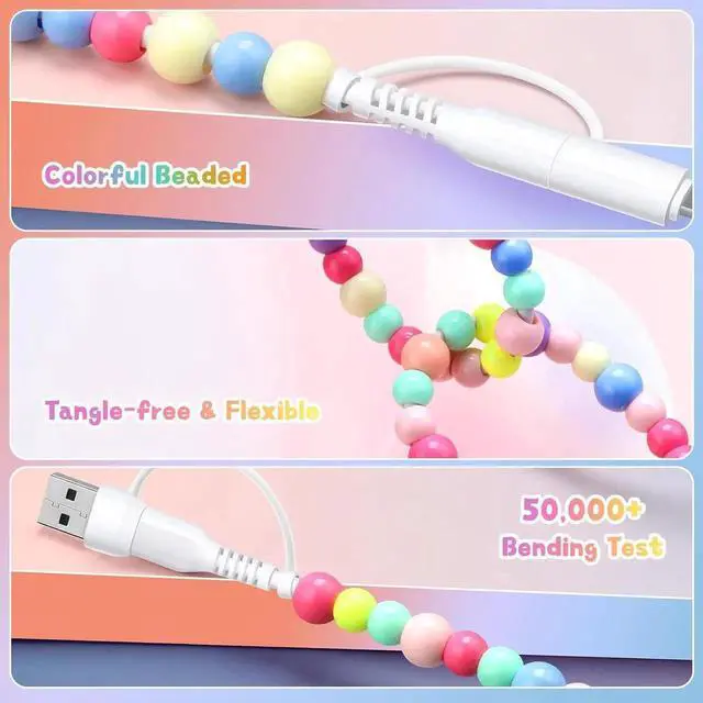 Durable: The USB C Charger Cable is made of high good copper with a premium TPE coating that resists bending pulling and tangling and has been tested to withstand more than 50 000 bending cycles to ensure superior durabilityBeaded Data Transfer USB C