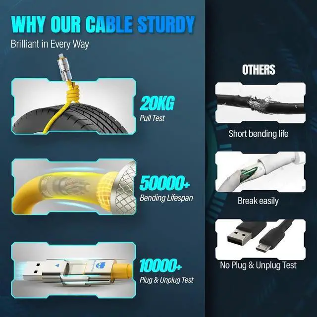 Whether you're on vacation a road trip or camping this 4 in 1 charging cable ensures you stay powered up. Should you have any inquiries our customer support is available to offer assistance at any time guaranteeing you have a smooth experience on your travelsIMPORTANT NOTES - This cable is not compatible with thick phone cases but works with 98% of phone cases. If you have any queries or concerns regarding your travel gear or vacation essentials don't hesitate to reach out to our customer support team for assistance