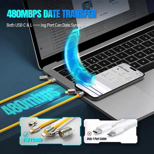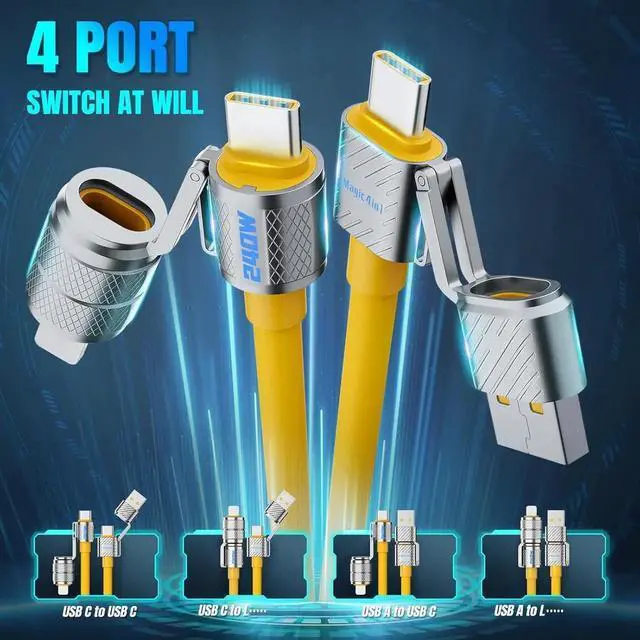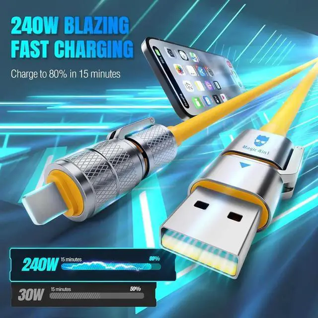 Made from food-grade skin-friendly silicone it is tangle-free waterproof and easy to clean. The sturdy zinc alloy housing is 1000 times stronger than plastic guaranteeing a reliable 4 in 1 charger for all your on-the-go needsCARPLAY & ANDROID AUTO COMPATIBILITY - The Magic4in1 charger cord supports both CarPlay and Android Auto ensuring seamless integration with your car's system. Whether using USB-C to Type-C or USB-C to L this versatile charging cable is perfect for your cruise essentials and road trip accessories providing multiple device support wherever you areWHAT YOU WILL RECEIVE - The Magic4in1 240W 4-in-1 Multi Charging Cable (5 FT) is a game-changer for those looking for essential travel items.