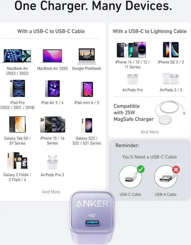 What You Get: Anker 511 Charger (Nano 3 30W) welcome guide our worry-free 24-month warranty and friendly customer service (cable not included).
