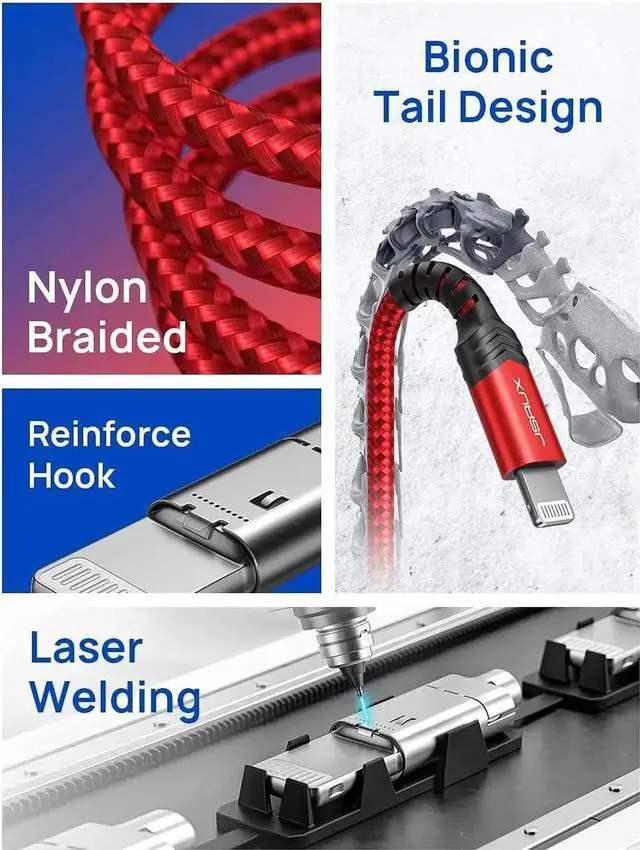 Durability: The JSAUX Lightning cable features a nylon braided layer alloy casing and strain relief joints making it 10 times stronger than the original iPhone cableUpgraded
