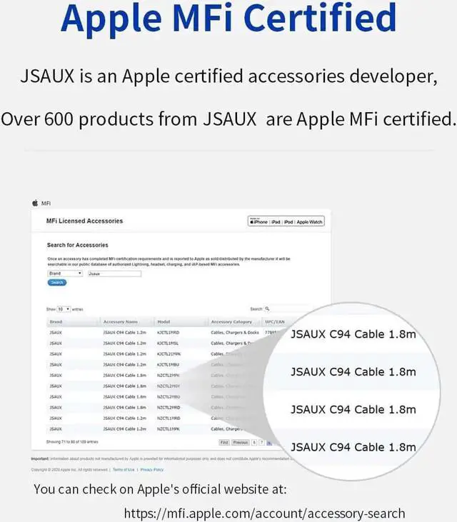 MFi Certified Lightning Cable: Equipped with 's original C89 connector and smart chip this cable matches the performance of the original but is 10 times sturdier. Verify its authenticity on 's websiteSuperior