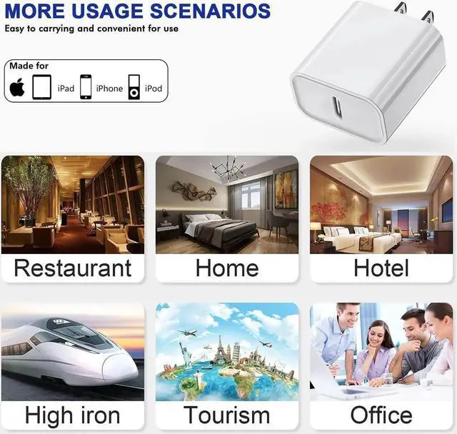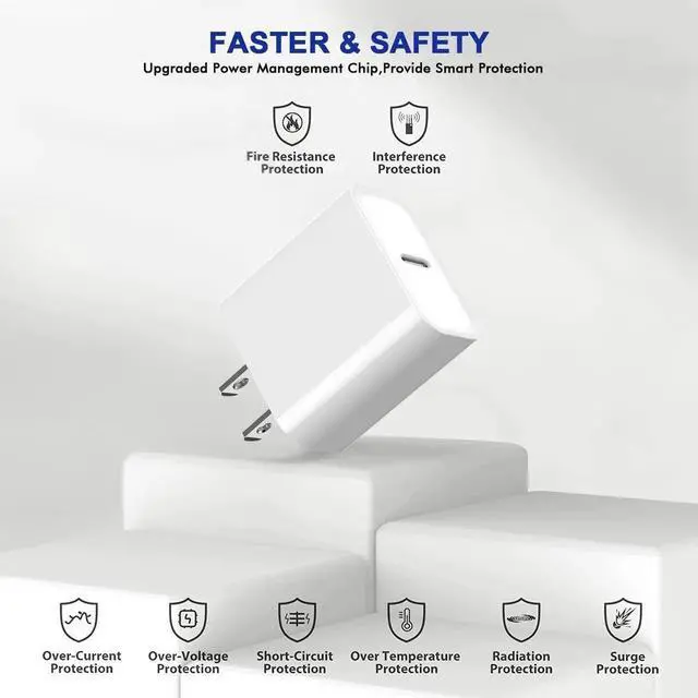 Fast Charger Block High-Speed Charging: iPhone Fast Charger equipped with 20W PD 3.0 USB Type C power delivery wall plug PD 3.0 Quick-Charge USB C port provides Max 20W output power. Fast charging up to 50% battery power in just 30 minutes 75% faster than standard USB charger. Full charging to iPhone in only 1.5 h save one hours.? UL Certified Excellent Safety Fast Charger: UL certified 20W PD 3.0 wall mounted charger has multiple charging protection such as overvoltage protection overcurrent protection overheating protection and short circuit protection and provides continuous temperature monitoring and output control to protect the equipment you connect.? 3Pack compact and lightweight