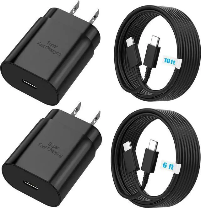 ![Alt view image 6 of 7 - Android Charger 25W for Charger Super Fast Charging USB C Block Type C Charge Cable Cord [ 6ft +10ft ] for Galaxy S25/S24 Plus/S23/S22/S21/S20/Note 20/Tablet/Watch/iPhone 16/15-Black 2Pack](https://c1.neweggimages.com/productimage/nb640/C280S2509200DWYAZ83.jpg)