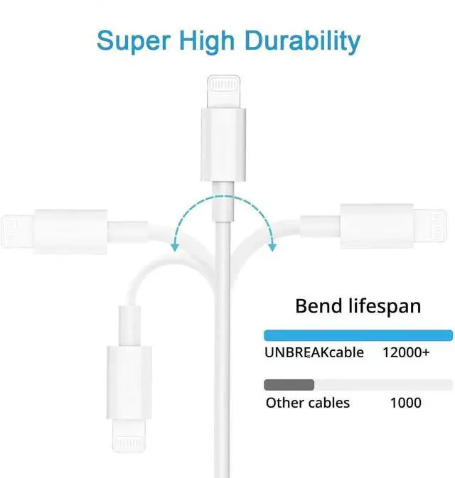 More Durability & High Quality: All our Lightning cables have do the test. High quality iphone cable Sturdy enough to bear 10 000 swing tests 12 000 plug insertions and unplugging 48 hours of salt spray flame retardant 94V-1 Ensure 100% charge and sync your iPhone/iPad devices with high speed. Tangle-free 3 Feet length is convenient for usage while Charging and Sync at Home/Office/Travel in Bed Hotel Rooms and more. Professional Customer