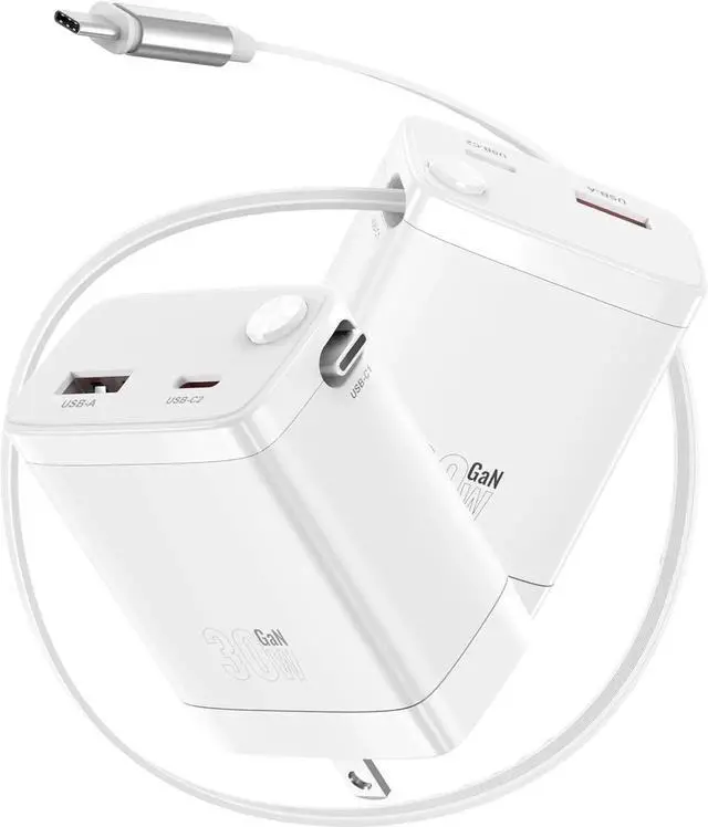Make Your Travel Easier: Our cutting-edge phone charger features a retractable USB-C cable that extends up to 25in (Press the button to pop it up). After use pull it out again to automatically retract. Whether at home in the office or on the go items can be easily and worry free stored. When you're traveling simply fold the plug retract the cables and easily store the charger in your bag or pocketRapid