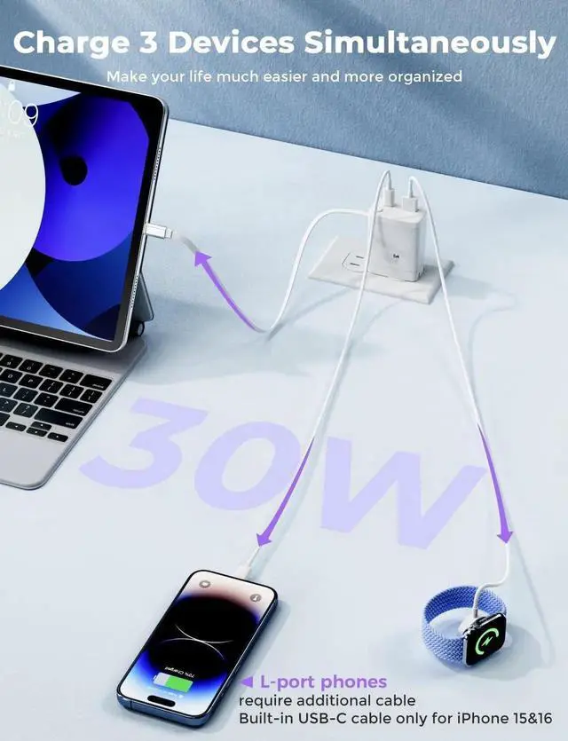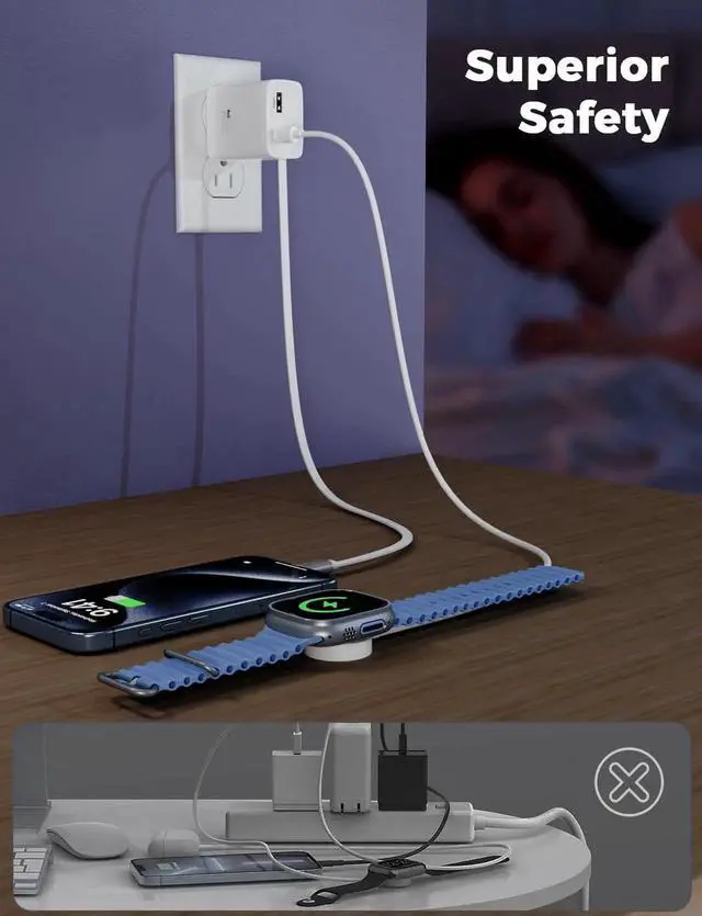 Multi-Port Wall Charger: Featuring a 3-port design this compact charger is universally compatible with a wide range of electronic devices including the Phone 16/16 Pro/16 Pro Max Phone 15/15 Pro/15 Pro Max iPad Air/Pro/Mini Galaxy S23/S22/S21/S20 Ultra/S10/S9/S8 Plus tablets LG phones Google Nexus devices Galaxy Tab and Watch Series 9/8/7/SE2Confidence-Backed Assurance - We are proud to offer you top-quality products backed by our unwavering commitment. Every product includes a stress-free 36-month warranty along with lifetime technical support. If you have any questions feel free to reach out to us. The Xiwachrege team provides round-the-clock customer service available 24/7 to address any concerns and ensure a seamless experience for our valued customers