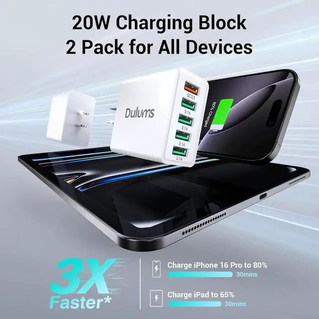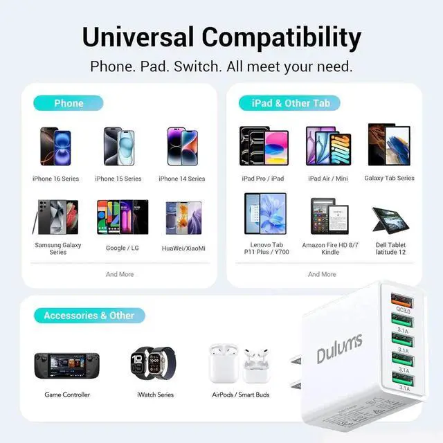USB Charger: This fast wall charging plug has a maximum output of 50W which can fully charge your devices faster compared to ordinary plugs greatly reducing your waiting time. Let you enjoy super fast charging bring faster and more efficient charging experience for all devicesWide