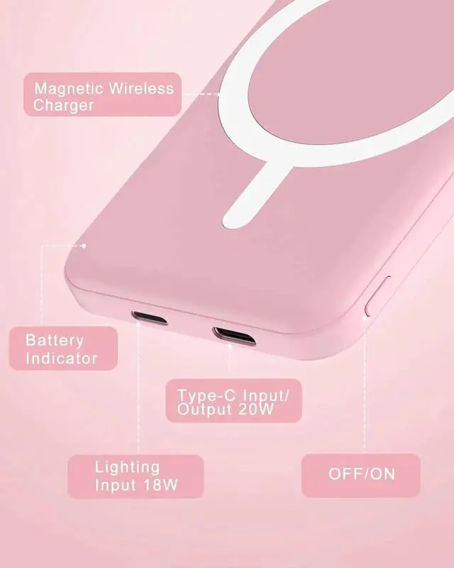 Wireless & Wired Charging: Support 5W 7.5W 10W and 15W Max wireless charging and max 20W USB-C output; support max 12W Lighting input and max 18w USB-C input; The wireless charger can charge 2 Devices at the same time shared charging with no waiting. And the portable charger iPhone uses soft silicone material to protect your phone from damage while wireless charging; The magnetic portable charger for iphone ensures faster charging speedsSuperior