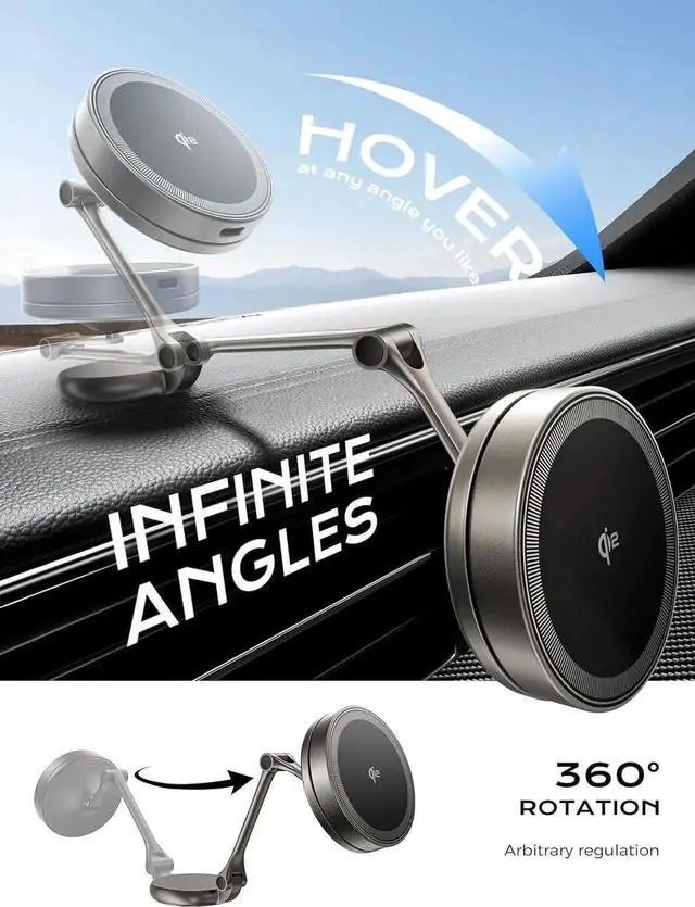 Revolutionary 2-in-1 Design-Magnetic Car Mount & Wireless ChargerUse THREEKEY Wireless Car Mount Charger as a fast-charging pad or detach it for a minimalist phone holder. One sleek design two ways to ride! Sticks tight Adjusts easyThe phone holder adopts 360° rotating base high-quality three-axis metal joint and durable zinc alloy bracket which can flexibly adjust the angle position and distance. With dual-sided magnetic charging pad just snap & goauto-aligns magnetically charges instantly no fumbling for cords Drive Safe Stay Hands-Free! Detachable Wireless Charger with Qi2-Certified 15W Fast ChargingThe dual-sided magnetic charging pad attaches securely to the mount or works independently for charging.