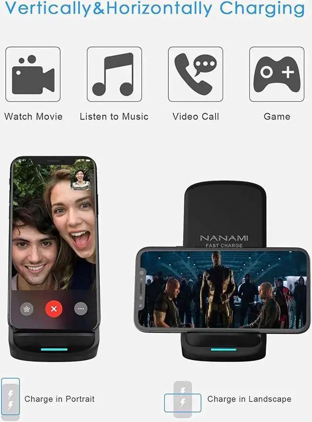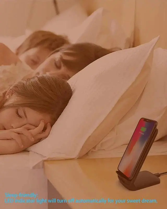 Convenient Qi Wireless Charging - Say goodbye to tangled cords and enjoy wirelessly charge by simply laying your phone on the charging stand no more plug in/ out troubles. No beeping sounds and annoying lights with this upgraded fast wireless charger its LED indicator will automatically shut off after 10 seconds for your sweet sleep. Dual Viewing Angles - 2-coil wireless pad charges your phone vertically or horizontally for the most ideal view and support when watching videos listening to music playing games and more perfect accessory for your phone at any places like office bedroom living etc.