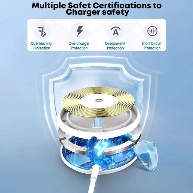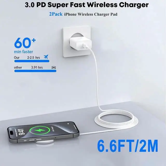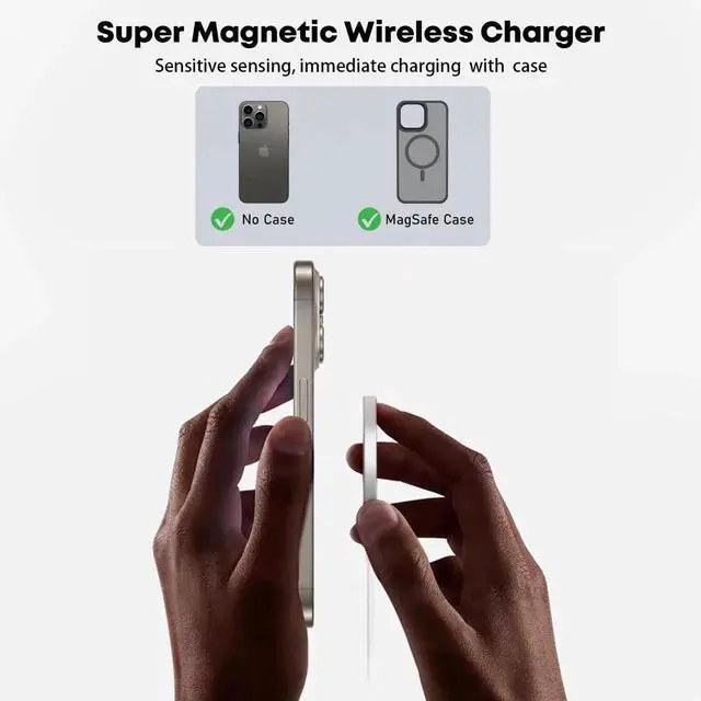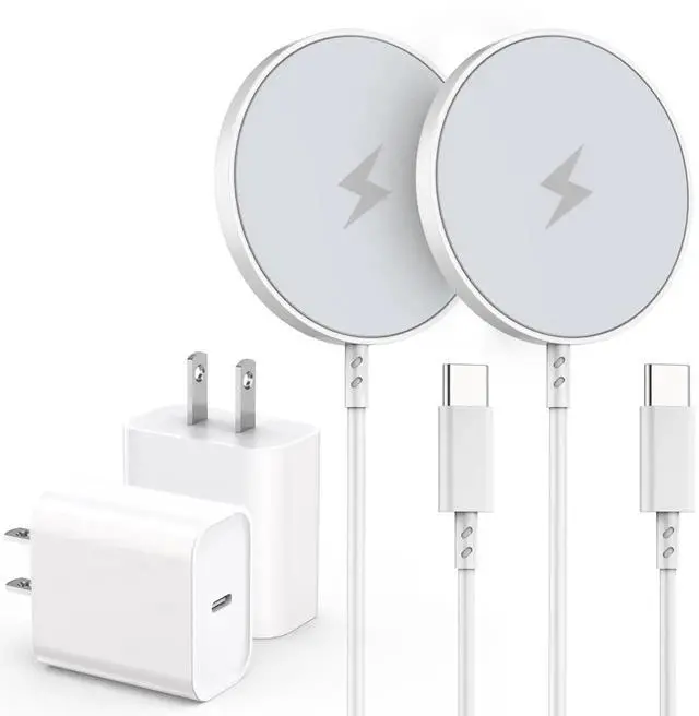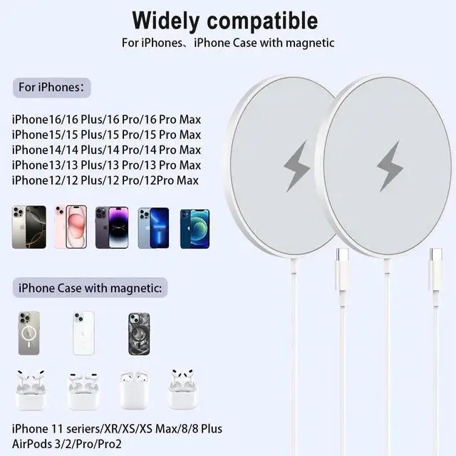 Note: Non-MagSafe cases may weaken magnetic adsorption. [ Upgraded Strong Magnetic & Portable Design ] The wireless charger iPhone fast charging pad can be precisely aligned with your iPhone and is easily attached greatly improving the speed of wireless charging. With strong magnetic can switch the angle 360° of the charger pad to meet your needs while charging. The ultra-thin charging pad doesn't take up much space you can put it in your handbag backpack pocket or anywhere you want. [ Intelligent Safety Protection ] The magsafe charger adopts intelligent chipset high-quality materials and advanced Mag Safe magnetic coil to ensure safe and efficient charging. The built-in intelligent chip provides multiple protections to protect your iPhone from over-heating over-voltage over-charging and short circuits. [ What You Get ] Including 2 Pack 20W PD wall adapters and 2 Pack 6.6FT wireless charging cables. If you encounter any problems while using the wireless magnetic charger please feel free to consult us at any time and our professional after-sales service team will give you the perfect answer.