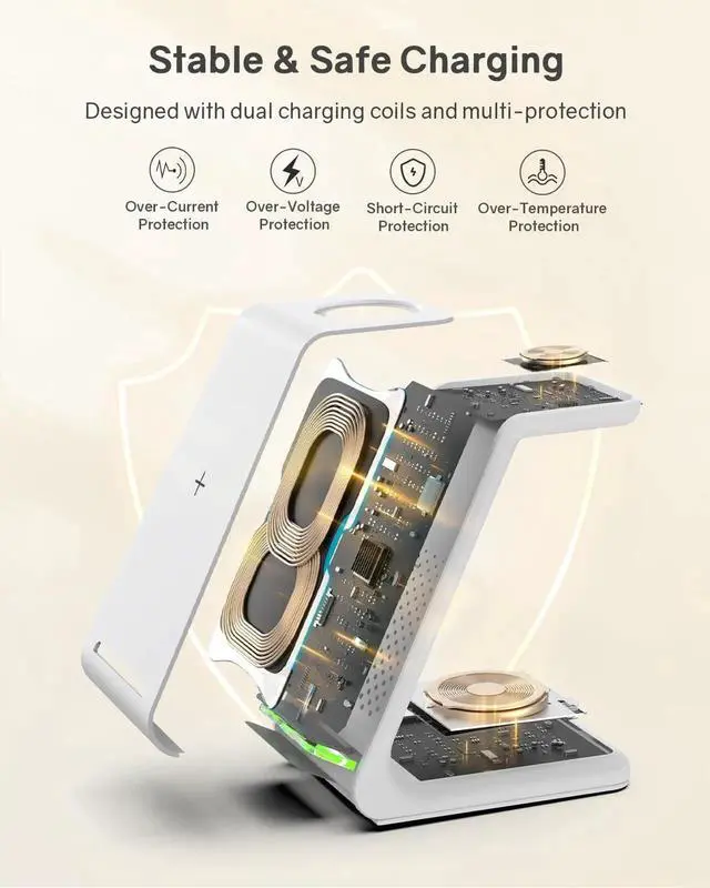 Universal Compatibility: 10W Max Fast Charging for Galaxy S22+/S22/21/ S20/S10/S10 Plus etc. 7.5W Max Fast Charging for iPhone 16/15/14/14 Plus/14 Pro/14 Pro Max/13 Pro Max/13Pro/13/12 Pro Max/12 Pro/12/11/ 11 pro/11 Pro Max/XS XS Max/XR/X/8/8 Plus. Not for iPhone 12 Mini/13 Mini5W Max Standard Charging for Airpods 3/2/Pro. 3W Max Standard Charging for Watch 8/SE 2/7/6/SE/5/4/3/2. (Please upgrade your watch to WatchOS 8.6 )100%
