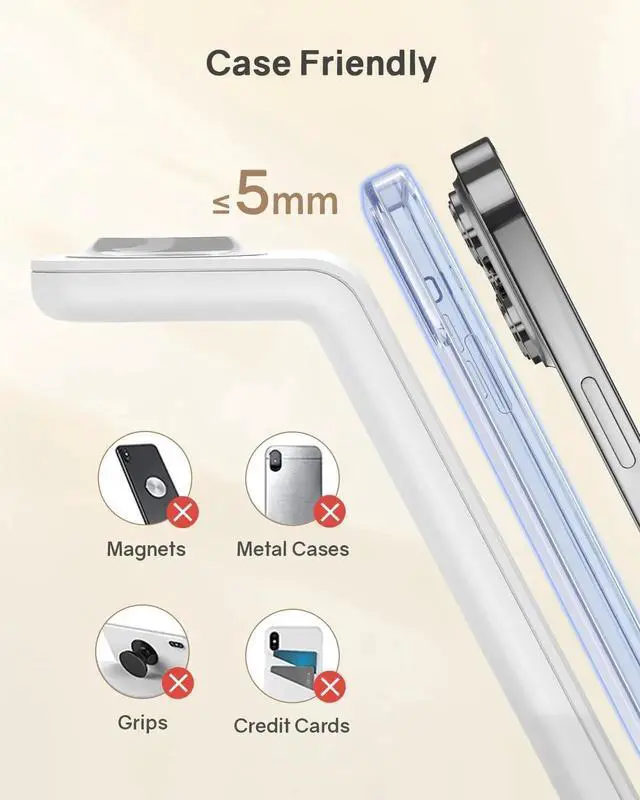 1. Please remove magnetic and metal attachments or credit cards before charge to ensure the charging stability.
