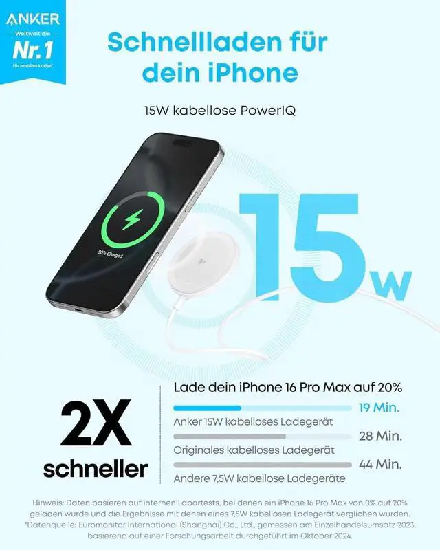 Wireless Charging: Unlock 15W high-speed charging with Qi2 certification and power your iPhone 16 Pro Max to 20% in just 19 minutes. For the best fast charging experience we recommend using a 20W or higher output charger (not included).