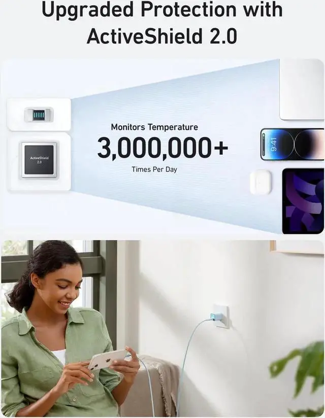 ActiveShield 2.0: Anker's proprietary technology safeguards your devices by intelligently monitoring temperature over 3 million times per daythat's twice as often as ActiveShield 1.0.