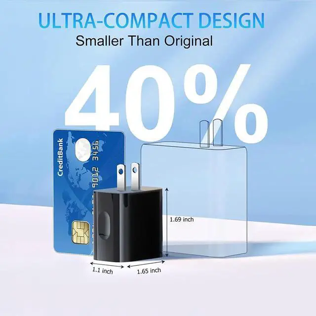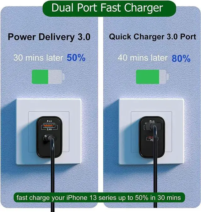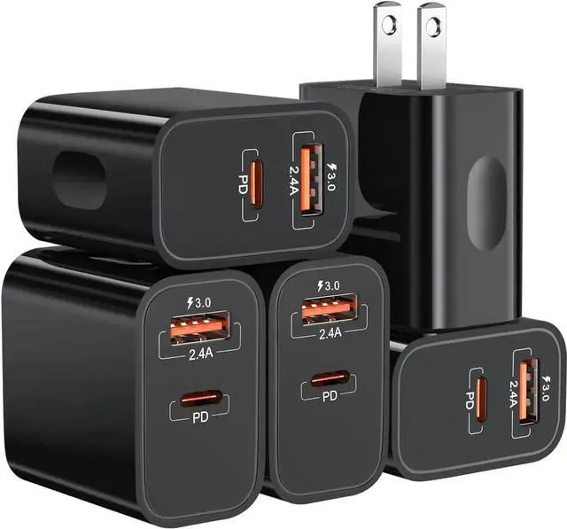 Note: If two ports charging together fast charging is NOT supported. It will work as a normal charger with each output less than 5V/2A.? Quick Fast Charge 3.0 Adapter Quick Fast Charge 3.0 can provide high efficient charging than normal chargers 35 minutes can up to 75%-80% charging. For the Quick 2.0 / 3.0 compatible device this would be a great choice.? Dual USB Port Fast Charger USB C Power Delivery combined with USB A Quick Fast Charger Bangfun Dual Port Fast Charger Block can meet all your device charging protocol needs. Power delivery port for the latest phone device(like iPhone 14/13/12 Pro Max) while the quick fast charging port for the previous compatible device. (like iPhone 11/XR or S10/S9+) Each device can find the most suitable charging protocol.? Type C CompatiblePD Fast charging compatible with iPhone 16/15/14/13/13 Pro/13 Pro Max/12 Pro/12 Mini; Galaxy S21/S21 Ultra/S20+/S20 FE/S20 Ultra 5G; Galaxy Note 20 Ultra; Quick Fast Charging for Galaxy S10E/S10+/9/8/7 Plus/Edge/Active; Note 10/9/8+; iPhone 11/11 Pro Max XR/XS Max/SE/8/7/6 Plus/Pad Pro.? Your Package Include 5 Pack Dual Port PD Fast Charger Block( USB C+ USB A Fast Charger).