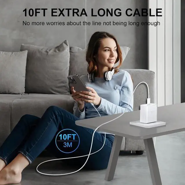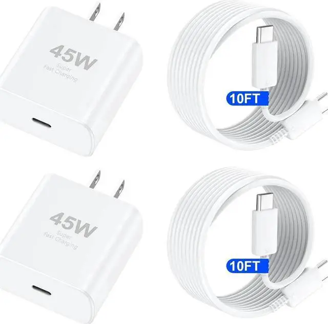 Charger Fast Charging: The 45W iPhone 16 Fast Charger USB C Block with 10ft extra long USB C to USB C fast charger cable cord provide Max 45W output power charge your iPhone 16 Pro Max up to 70% in just 30mins 6X faster than the original 20W USB C charger10Ft USB C iPhone 16 Charger Cable Cord The iPhone 16 Pro Max Charger with 10 ft Long type c to c charging cable cord supports PD 3.0 fast charging speed max up to 20V/5A (100W) The cable's reversible design allows for effortless plug-in while enabling efficient 480Mbps data syncing. With its generous 10FT length you'll move your device around while keeping your device powered up. iPhone 16 Pro Max Charger Fast Charging CompatibilityExtra long iPhone 16 USB C charger cable cord is perfectly compatible for iPhone 16 Pro Max / iPhone 16 Pro/ iPhone 16/ iPhone 16 Plus also for iPhone 15/ iPhone 15 Plus/ iPhone 15 Pro/ iPhone 15 Pro Max iPad Pro 11 inch 4th/ 3rd/ 2nd/ 1st iPad Air 5/4th iPad Mini 6th iPad 10th Generation. and Galaxy S24 Ultra/S24+/S24/S23 Ultra/ S23+/S23/S22 Ultra/ S22+/S22/S21 5G S21+ 5G. Safety and Reliable Phone 16