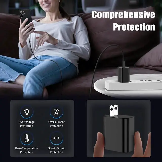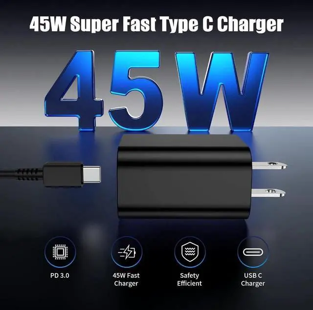 Quality: It has ETL (US) FCC CE ROHS certificated The shell is made of high quality ABS material heat resistance and low temperature resistance chemical resistance and excellent electrical propertiesPowerful compatibility: 45W compatible with Galaxy S25 S24 S23 S23 Ultra S23+ S22 S22+ S22 Ultra Note 10+ Note 10+ 5G A91 and future compatible devices. 25W compatible with Galaxy S21/S21 Ultra/ S21+ 5G ectWhat you get: 3*45W USB C Super Fast Charger with 3*6 feet USB C to USB C fast charging cable