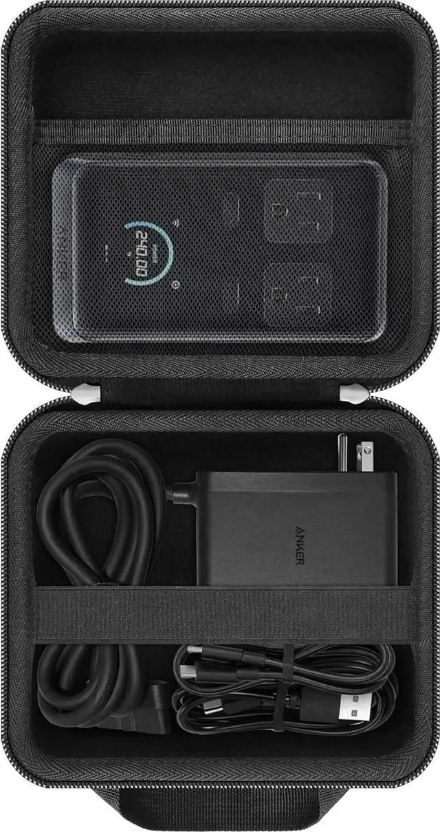 The elastic strap is designed to keep your Anker 240w charging station firmly in place. The strap is strong yet flexible allowing you to insert and remove the Anker Prime charging docking station with ease. Constructed from high-quality nylon material this Anker Prime 8-in-1 charging station 240w case offers robust protection against water dust and drops. The waterproof exterior shields your Anker Prime 240w charging station from moisture while the dust-resistant surface keeps it clean. The reinforced corners and sturdy structure provide excellent fall protection keeping your Anker Prime 8 in 1 charging station / Anker Prime charging docking station safe from accidental impacts.