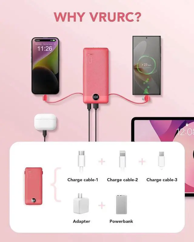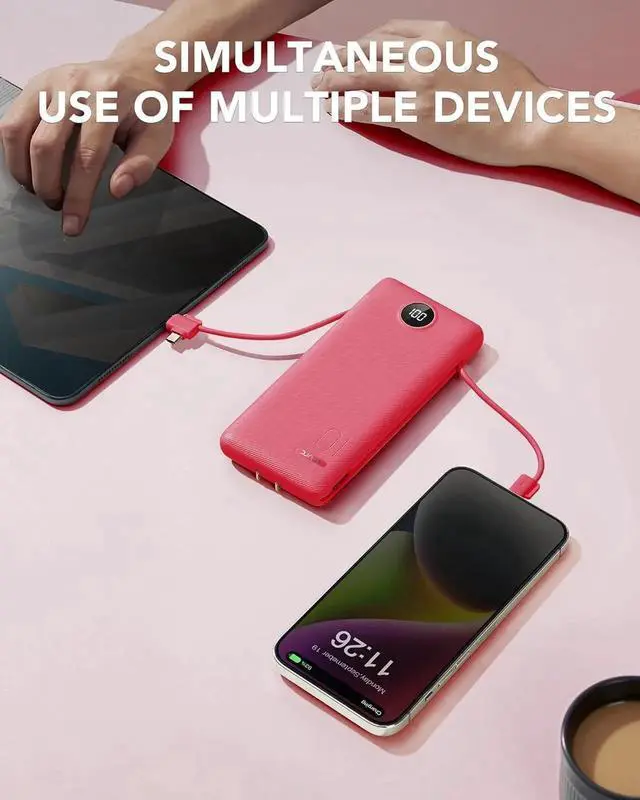 [All-in-One Portable Charger] This 10 000mAh portable charger features built-in micro USB Type-C cables and additional data cables. Portable phone charger also includes a USB input port and Type-C input/output ports making it versatile enough to meet most of your daily charging needs. [Portable Charger Built in AC Wall Plug] With its integrated AC wall plug you can charge the power bank directly from a wall outlet. No need to worry about carrying extra cables or adaptersit's always ready when you are. [High Capacity & Universal Compatibility] Boasting a 10 000mAh capacity this USB-C portable charger can power your devices 2.5 to 4 times on a single charge depending on the device.