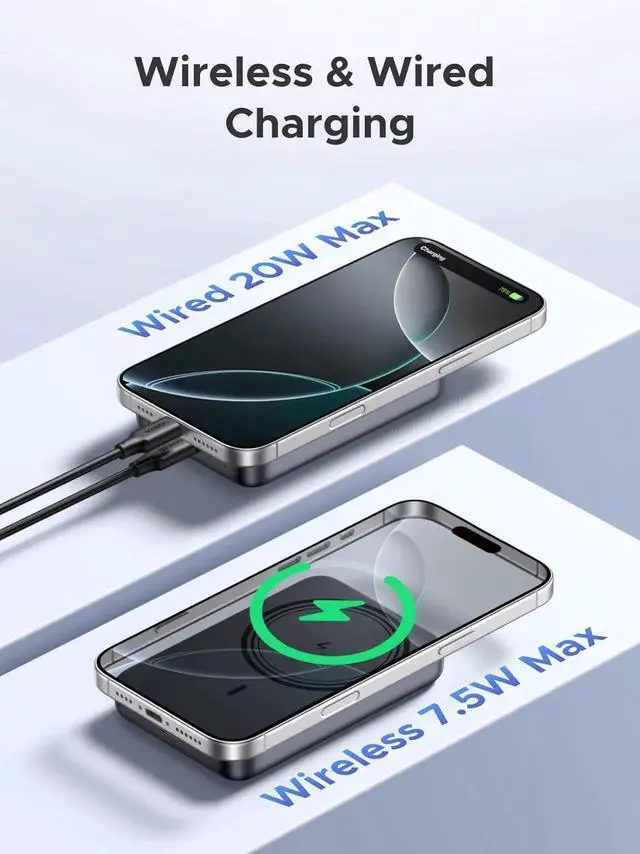 & Wired: This portable inductive power bank can charge another mobile phone at the same time while magnetic charging. In addition this USB C power bank also supports two-way charging. If you charge your devices magnetically you can also charge this UGREEN power bank. The USB-C port supports a maximum power of PD 20WPerfect