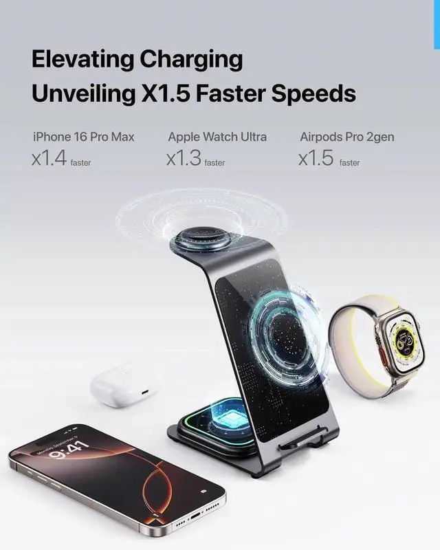 Compatibility: This wireless charging stand supports models from iPhone 8 to 16 Pro Max AirPods 2nd gen and newer and Qi-enabled devices. The watch pad is only compatible with