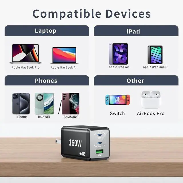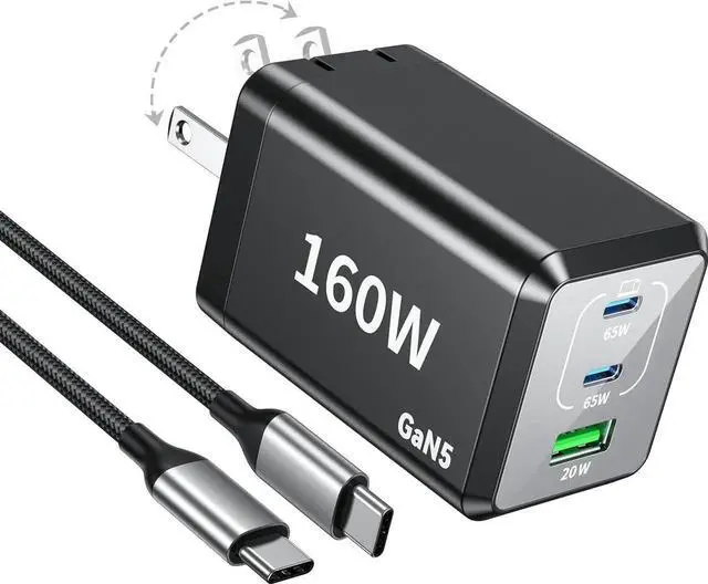 Fast-Speed Charging It with total 160 watt power. Dual 60W PD PPS. 3 port. 2 USB C port and 1 USB A. 65W x 2 USB C Power Delivery and 1x20W QC USB-A Compatible with Smartphone Tablet and Laptop Work For MacBook Pro 13''/ MacBook Pro MacBook Air MacBook iPhone 16/16PRO MAX/ 15 Pro max 14/14PLUS/14PRO/14PRO MAX 13/ 13 Mini/ 13 Pro/ 13 Pro Max iPhone 12/ 12 Mini/ 12 Pro/ 12 Pro Max/ Galaxy S21+/ S21/ S21 Ultra/ S21 FE/ S20+/ S20/ XPS 15/ 13 Google Pixel iPad Pro 12.9 ''/ iPad Pro 10.5 ''/ iPad Pro 11''/ iPad Mini Series/ iPad Air Series.