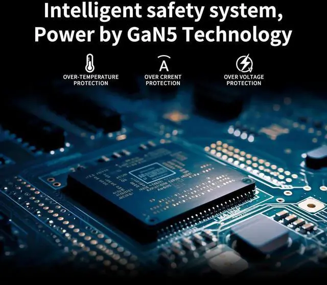 more up to 3× faster than with an original old charger. 3 X15W USB A fast charger port for your other devicesThree-in-One: With 3 USB-C Power Delivery port and 1 USB A. 65W x 2 USB C and 1 USB A QC 20W. youre ready to charge Seven of your devices simultaneously. Extended power cord for convenience and portability Handy for home office and on-the-go charging. Whether you're in an office or at an airport this chargelis desianed for convenience. lts foldable design reduces clutter and maximizes space. making it an essentialtravelcompanio'for keeping your devices charged and ready.