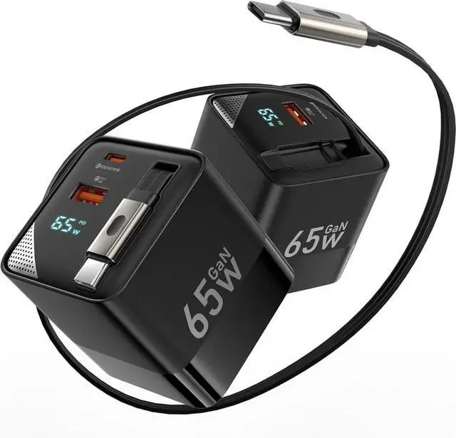 NOTE: After pulling out the cable it only needs to be gently stretched by 1 more centimeter to retract the cable. [Safety Charging - Advanced GaN 5 Technology] The usb wall charger for phone utilizes advanced Gallium Nitride technology. Whether it is a laptop tablet or smartphone it can be fully charged in a short time. At the same time GaN 3 technology also ensures low heat and higher safety and efficient charging anytime anywhere. [Universal Compatibility] Equipped with USB C USB-A port and retractable type-c cable this charger is compatible with nearly all electronic devices. Including laptops (Macbook Galaxy Book4 Pro IdeaPad Vivobook HP Chromebook) tablets (iPad Tab Google Pixel Slate Fire HD10/Kindle Fire HD 10) smartphones ( iPhone 16/15/14/13/12/11 Galaxy S24/23/22/21 Google Pixel) iPad Air/Pro/Mini notebooks headphones watch game consoles etc.