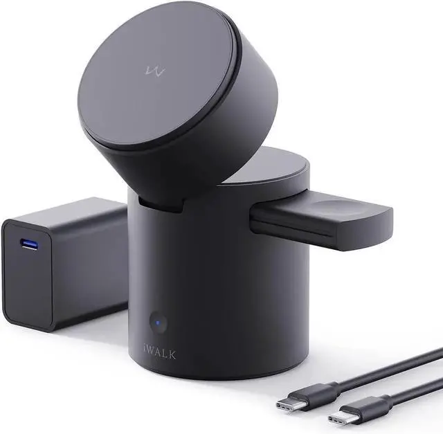 What You Get: iWALK 3-in-1 Auto Turn Wireless Charging Station*1 20W Charging Adapter*1 5ft/ 1.5 m USB-C to C Cable*1 User Manual*1